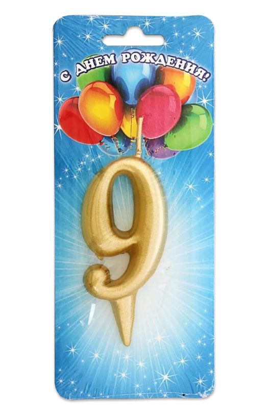 Свеча цифра Золотая 9